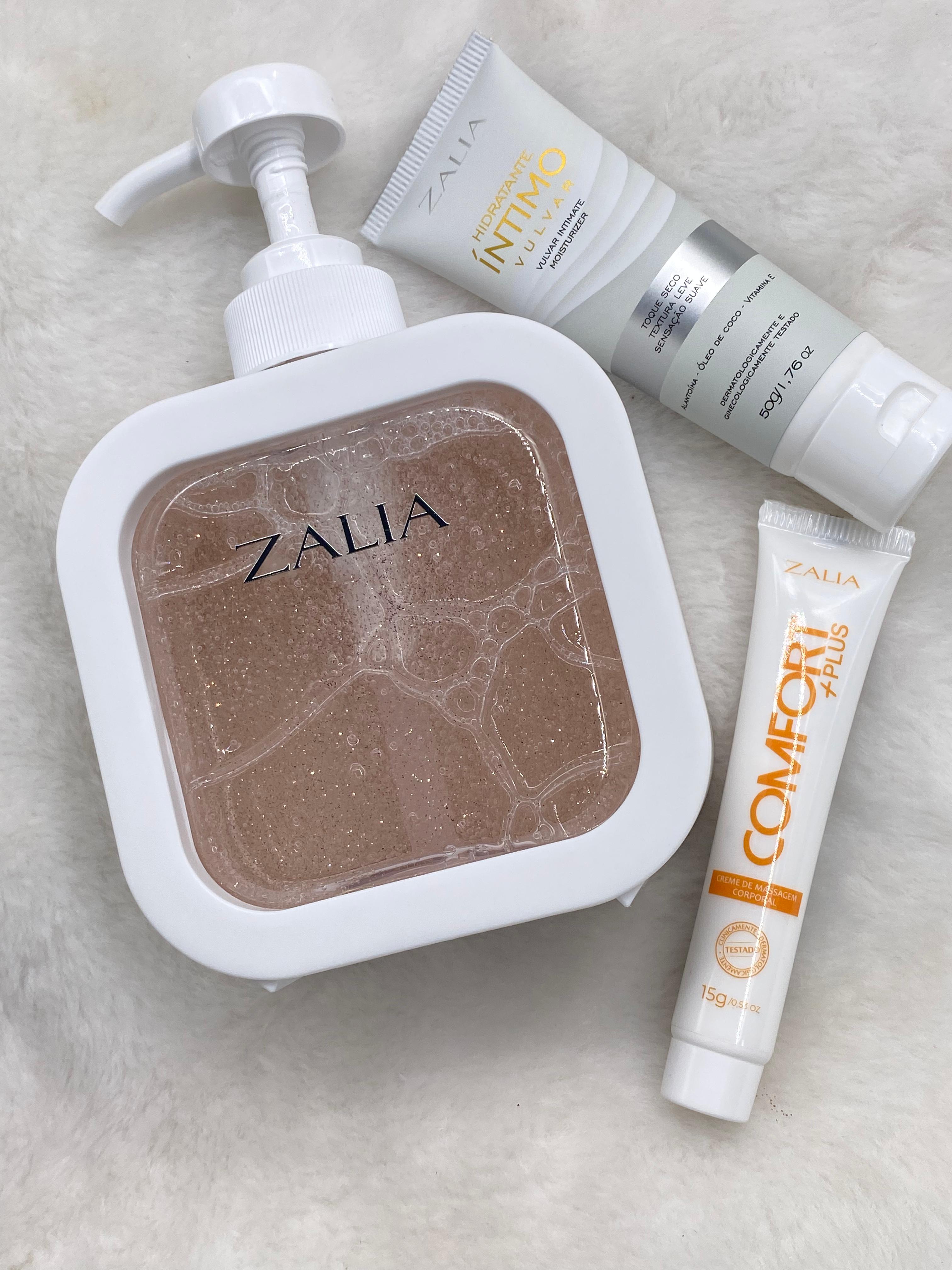 Descubra o poder do autocuidado com o sabonete íntimo ZALIA. Fórmula suave, com fragrância envolvente e ingredientes que respeitam o equilíbrio natural da sua intimidade. Sinta-se mais confiante e protegida todos os dias.